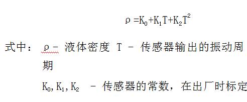 WS3051MD-MM 智能衛(wèi)生式單直管密度計(jì)根據(jù)共振原理而設(shè)計(jì)。當(dāng)流過(guò)單直管內(nèi)的液體密度變化時(shí),他會(huì)影響密度計(jì)的振動(dòng)質(zhì)量,振動(dòng)質(zhì)量的變化影響單直管的諧振頻率,諧振頻率與過(guò)程流體的密度成反比。通過(guò)另一個(gè)壓電晶體檢測(cè)出來(lái),通過(guò)移相和放大電路,測(cè)量管被穩(wěn)定在自然諧振頻率上。當(dāng)諧振頻率變化時(shí),通過(guò)電子處理單元計(jì)算出準(zhǔn)確的密度值。振動(dòng)頻率與密度的關(guān)系為: