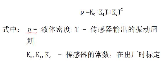 WS3051MD-MN 智能法蘭式單直管濃度計根據共振原理而設計。當流過單直管內的液體密度變化時,他會影響密度計的振動質量,振動質量的變化影響單直管的諧振頻率,諧振頻率與過程流體的密度成反比。通過另一個壓電晶體檢測出來,通過移相和放大電路,測量管被穩(wěn)定在自然諧振頻率上。當諧振頻率變化時,通過電子處理單元計算出準確的密度值。振動頻率與密度的關系為: